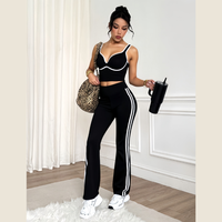 नवीनतम ठोस लुभावनी काले सफेद कंट्रास्ट रंग महिलाओं के योग खेल 2-पीस एथलेटिक कपड़े सेट